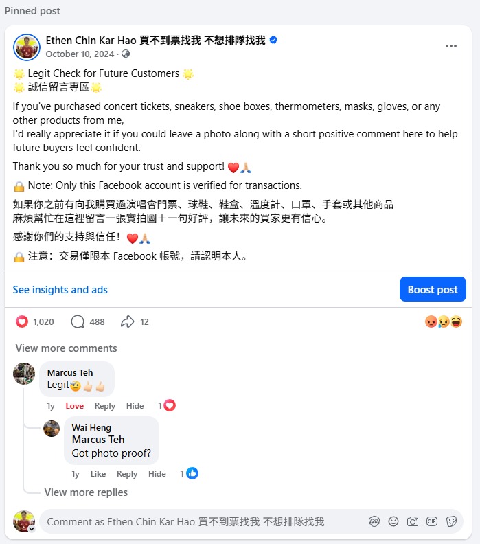 Ethen Chin Kar Hao Ticketing Service | 豪哥带你看演唱会票务